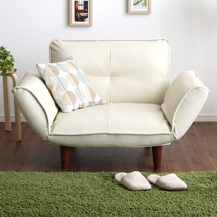 SF-4278 幅88~127cm・レザー製一人用カウチソファー(リクライニング14段階・アイボリー・PVC革)