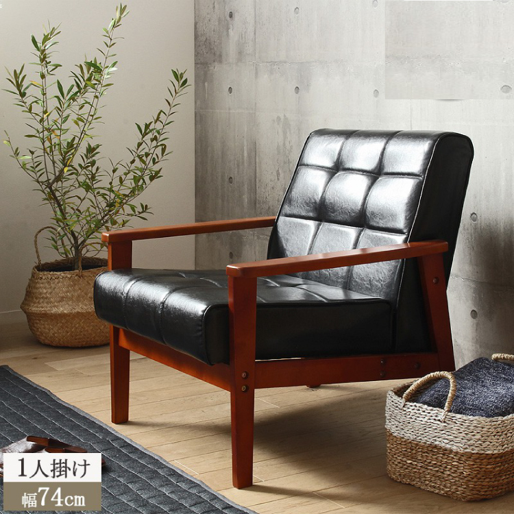 幅74cm・レトロな木肘のひとりがけカフェソファー