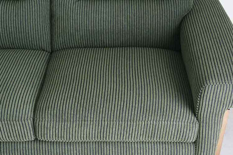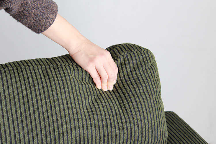 モスグリーンのコーデュロイ生地が安心感のある2人掛けソファ。