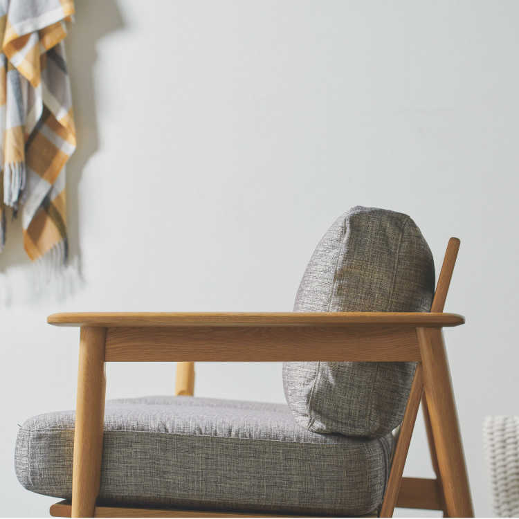 クッション・フレームともに優しい色合いが落ち着いた空間を演出してくれます。