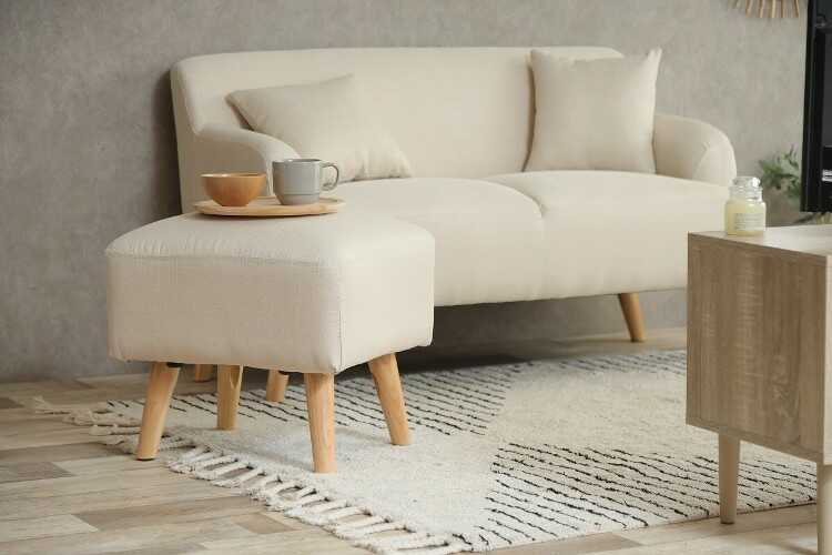 オットマン付き布製SOFA・アイボリー