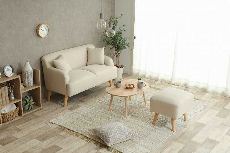 布製SOFAオットマン付きは、全体的に丸みを帯びたデザインで様々なお部屋に馴染みやすいのも魅力的。