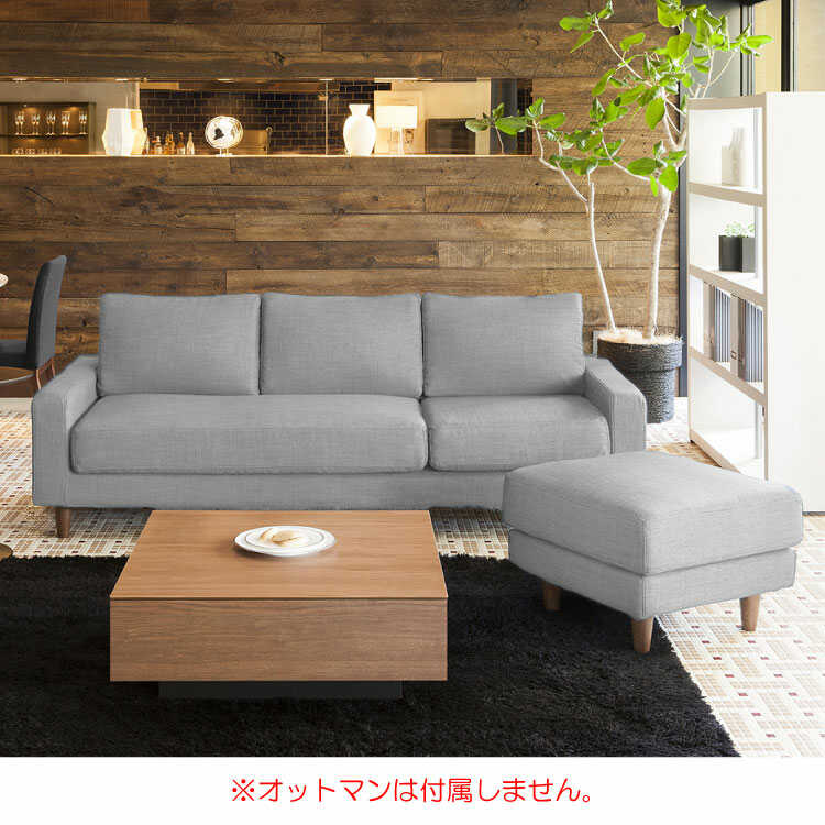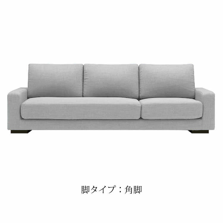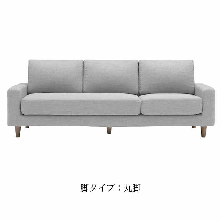 大型3人掛けソファーライトグレーの脚は角脚と丸脚の2種類からお選びいただけます。
