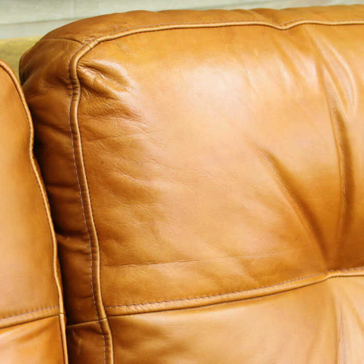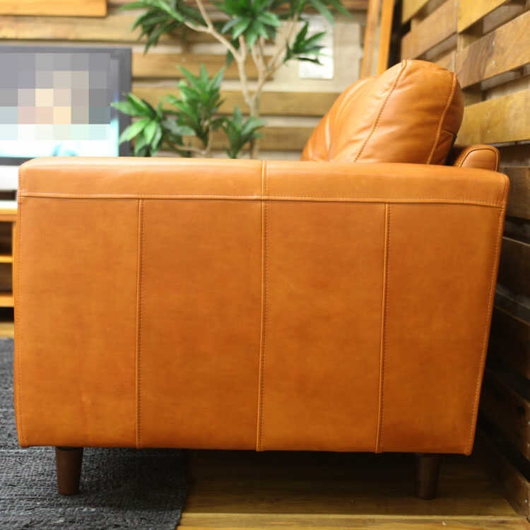肌触りの良い上質なオイルレザーを使用した高級な三人掛けソファー。