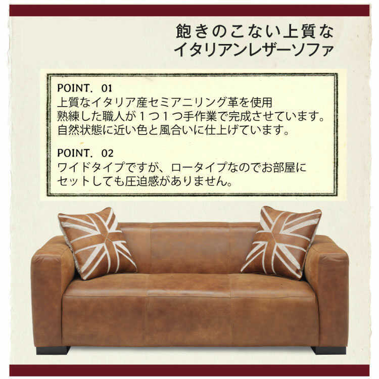 スツール:幅80cm、奥行き60cm、高さ38cm材質 イタリア革(セミアニリン仕様、ホルムアルデヒド軽減対策済み) 仕様補足 ユニオンジャッククッション2個付属 注意事項 ※天然革を使用している為、商品ごとにひっかき傷やシワなどが見られる場合があります。天然素材ゆえの風合いであり不良品ではございません。見た目の仕上がり感の理由による返品・交換は承れませんのでご了承ください。