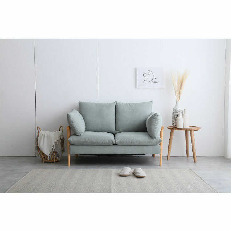 優しい色味をラインナップしたナチュラルな布クッション付き2人掛けソファー。