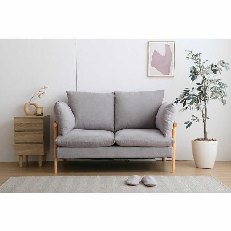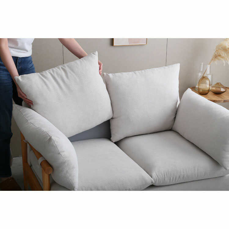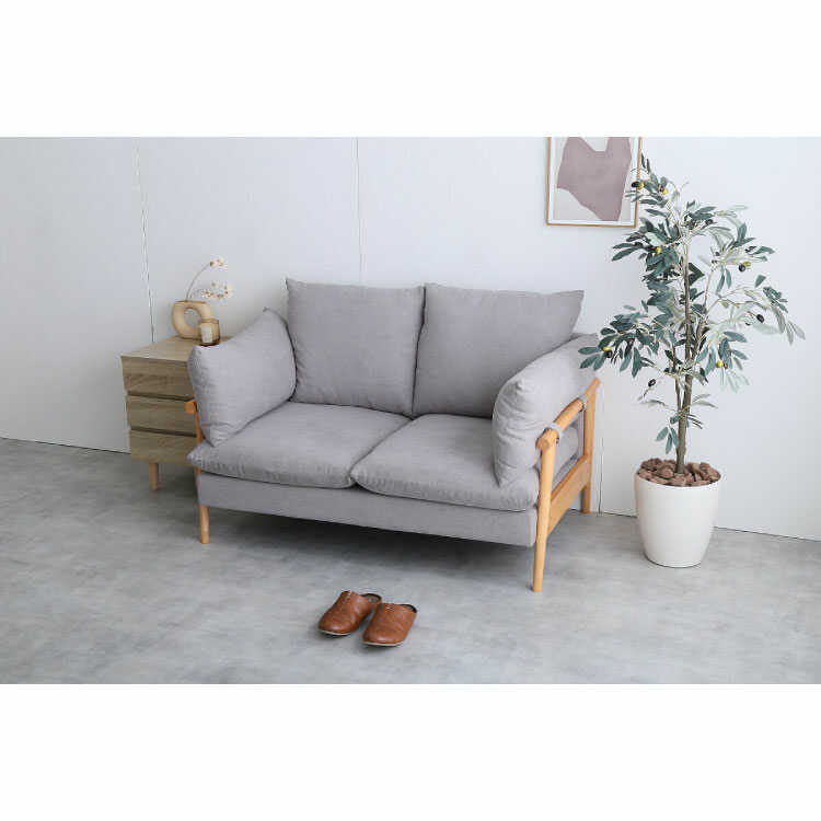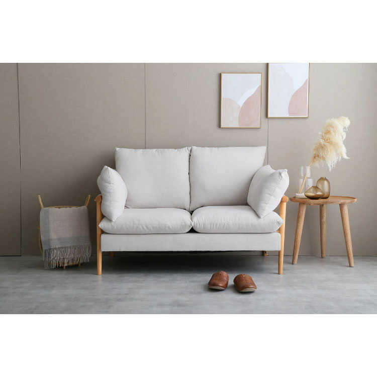 幅121cm・ナチュラルフレームと布クッションの2人掛けソファー(3色展開)