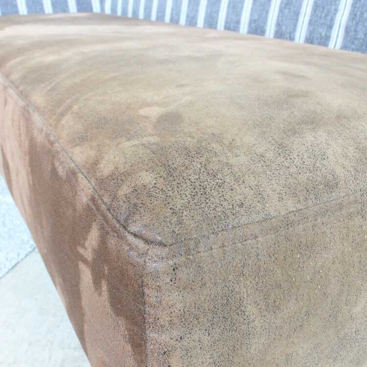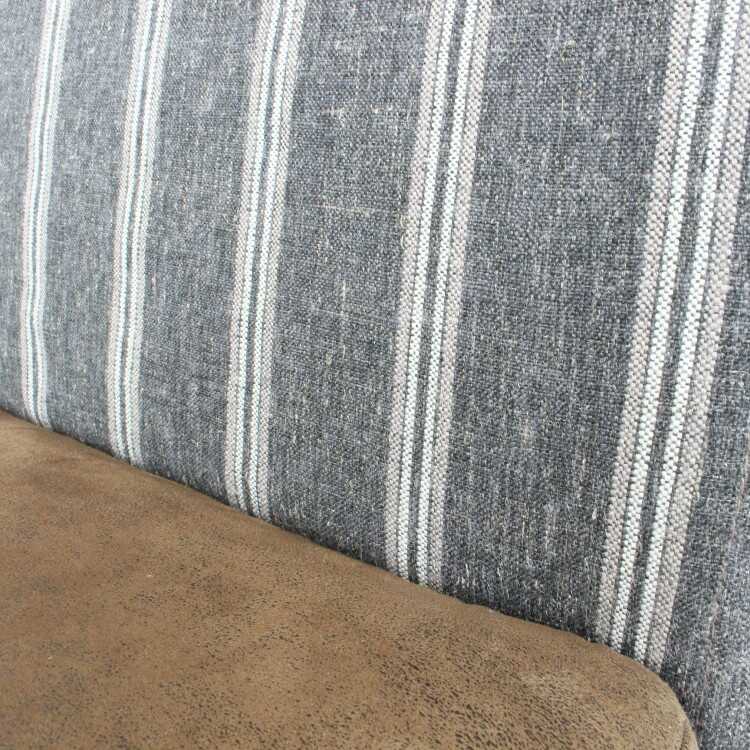 ストライプ柄がアクセントになったお洒落な背もたれはリネンが入った布ファブリックを使用。