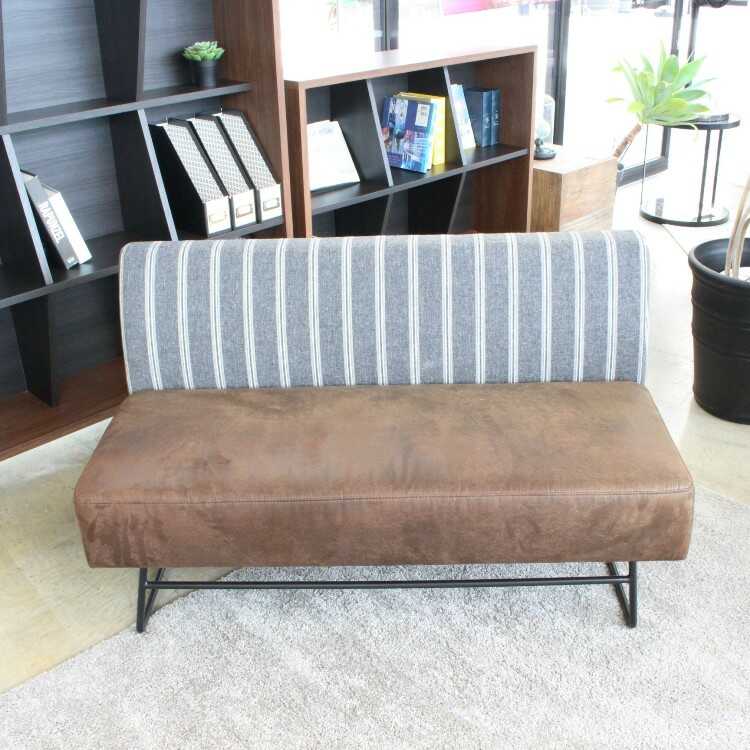幅120cm・肘なし2人掛けソファー(可愛いストライプデザインの布製)【今なら室内搬入サービス無料(組立作業は含みません)】