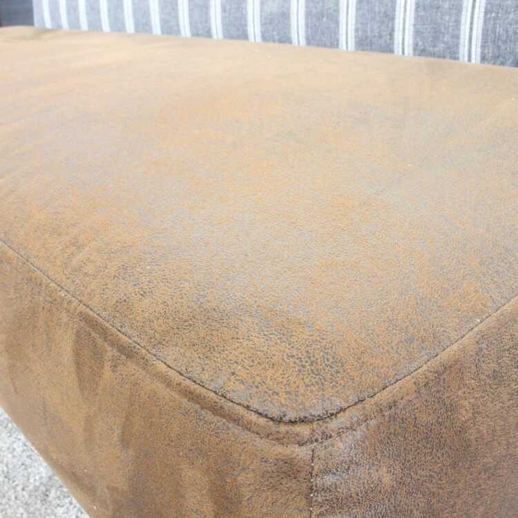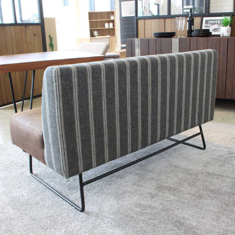 ストライプが入ったグレー色の背もたれは、リネンを含んだファブリックを使用しているためさらさらとした手触り。