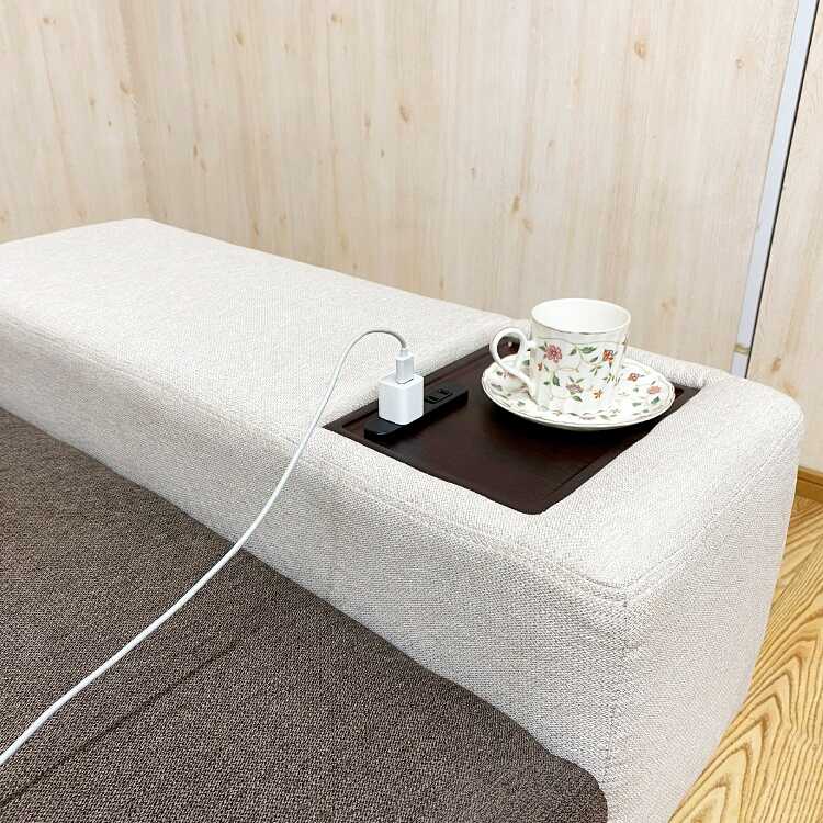 テーブル上にコンセントが2口付いており、ソファに座りながらスマホやタブレットの充電が可能です。