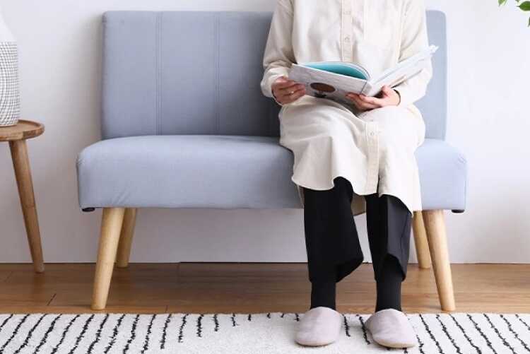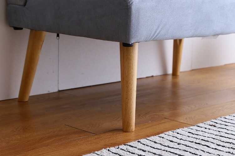 脚はナチュラルカラーの天然木を使用しており、グレーの張り地とも相性が良いです。