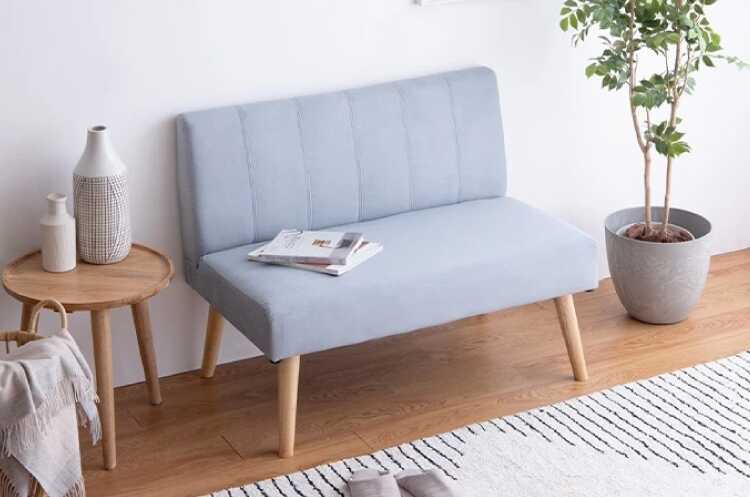 ダイニング用でも座りやすい高さの布ファブリック製肘なしソファー。