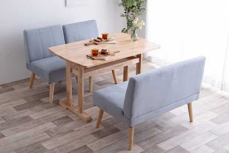 ダイニング用でも座りやすい高さのソファーは、両側に肘がないアームレスタイプなので全体的にスッキリとしていて圧迫感を与えません。
