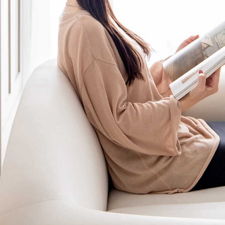 滑らかなカーブが入ったアームは身体のラインに沿いやすく負担が少ないので、背もたれにして寛ぐこともできます。
