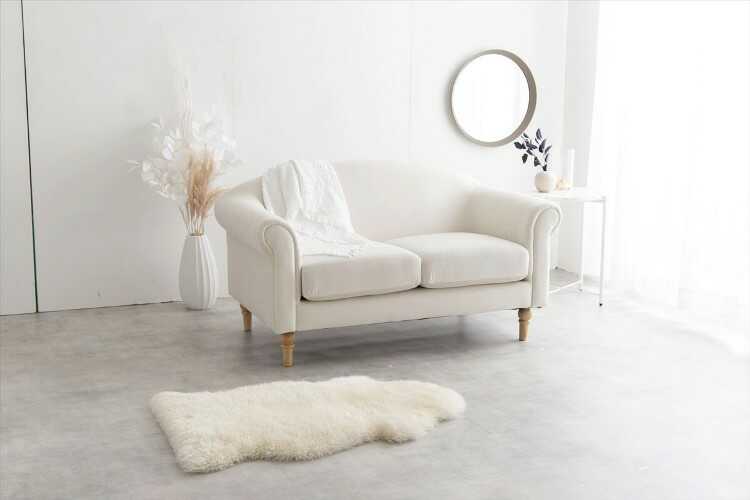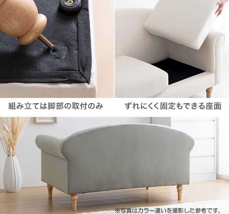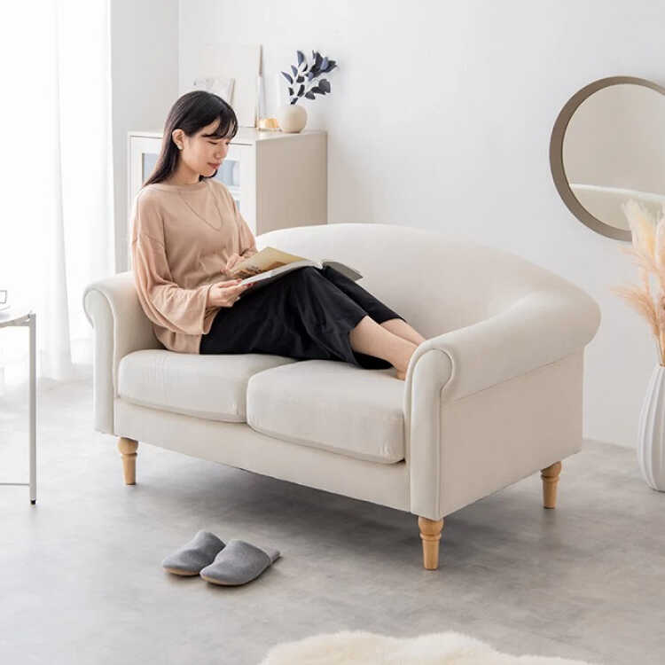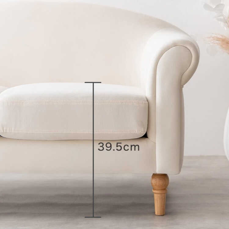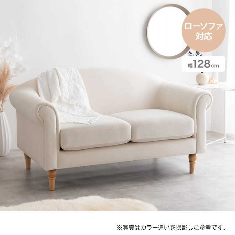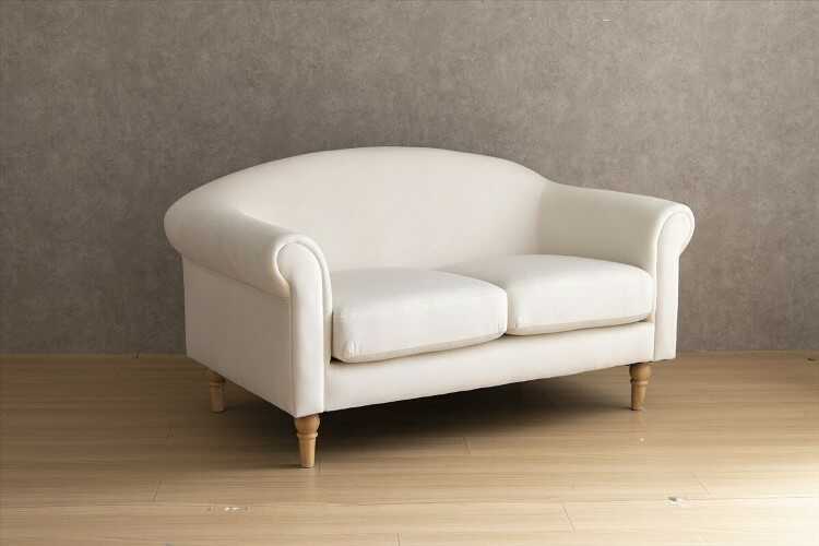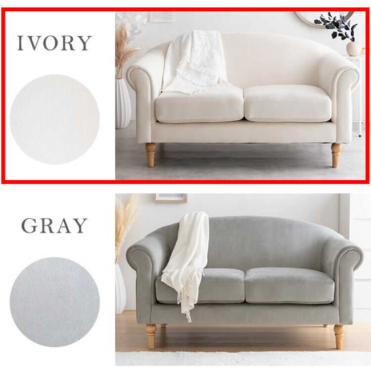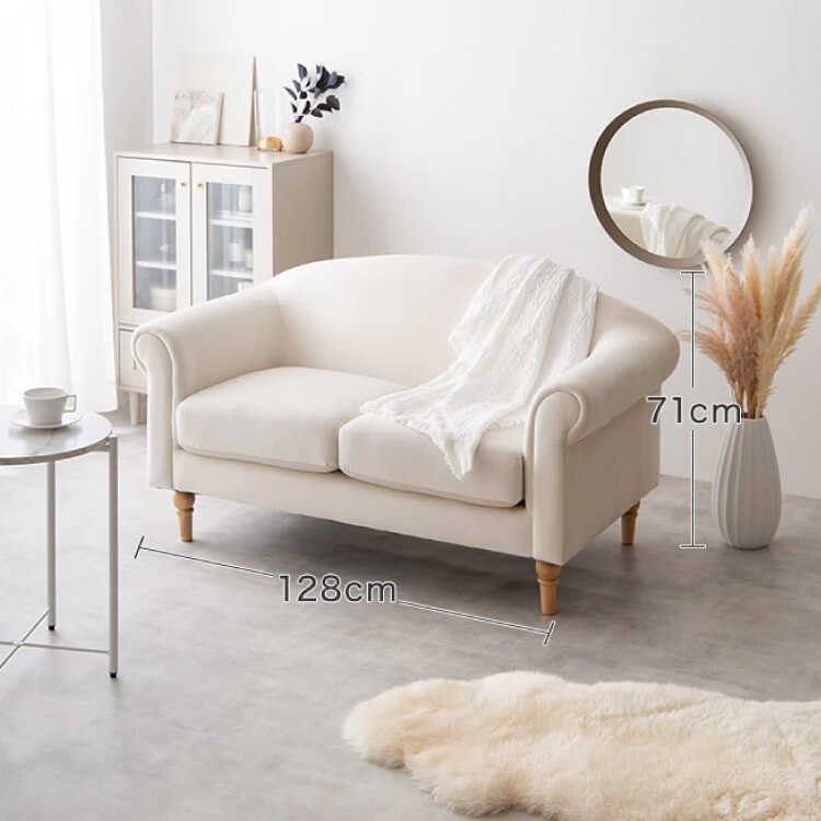 幅128cm・ベロア生地使用!滑らかなフォルムが上品なふたり掛けソファー(アイボリー色)
