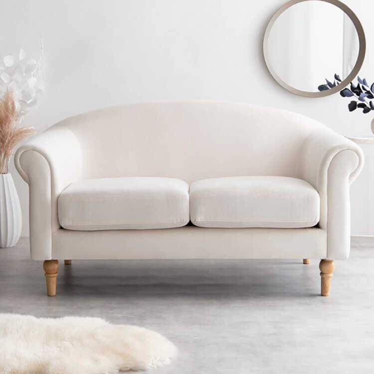 ベロア生地使用!滑らかなフォルムが上品なふたり掛けソファー