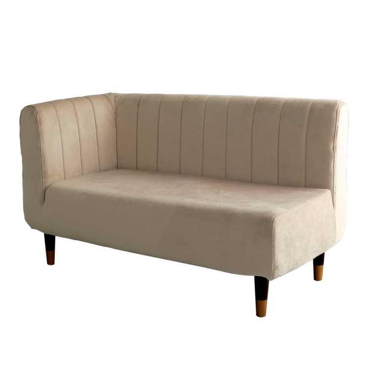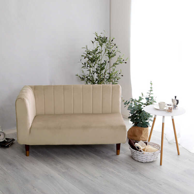 幅112cm・可愛くてコンパクトな片肘2人掛けソファー(ベージュ色・ベロア調)