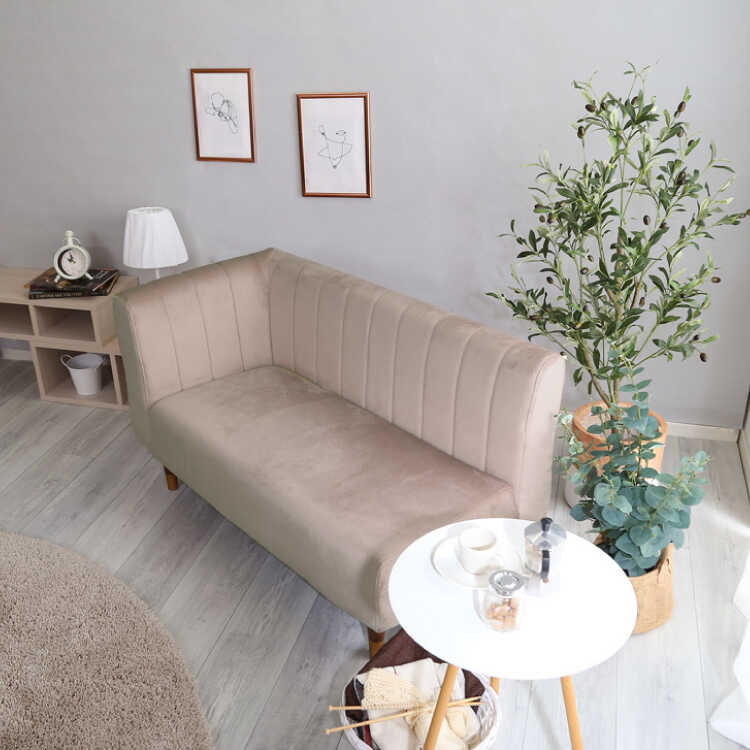 幅112cmとワンルームにも置きやすいコンパクトサイズで、一人暮らしにおすすめな片肘ソファー。片肘にすることで座面を広く使用できるので、コンパクトながらも大人2人が座れるほどのスペースがあります。ひじ掛けを背もたれにすれば座面上に足を乗せてゆったりくつろげます。カラーは温もりのあるベージュ色で、柔らかな印象です。
