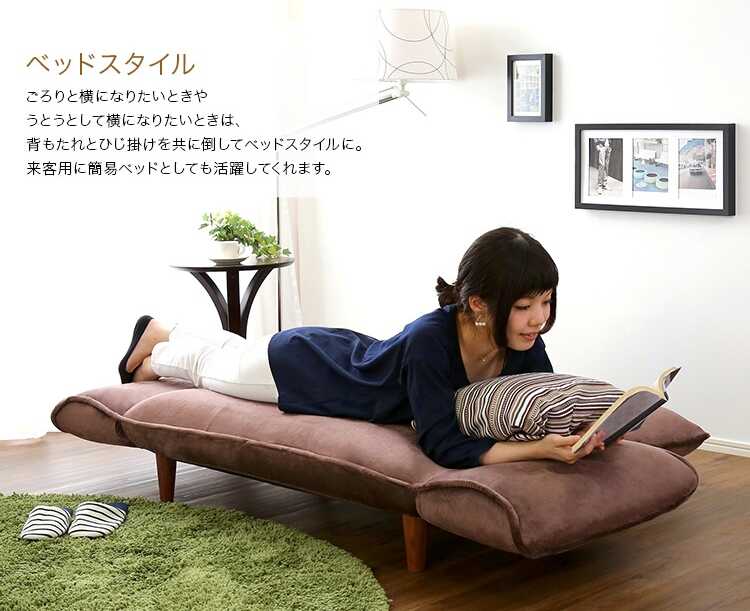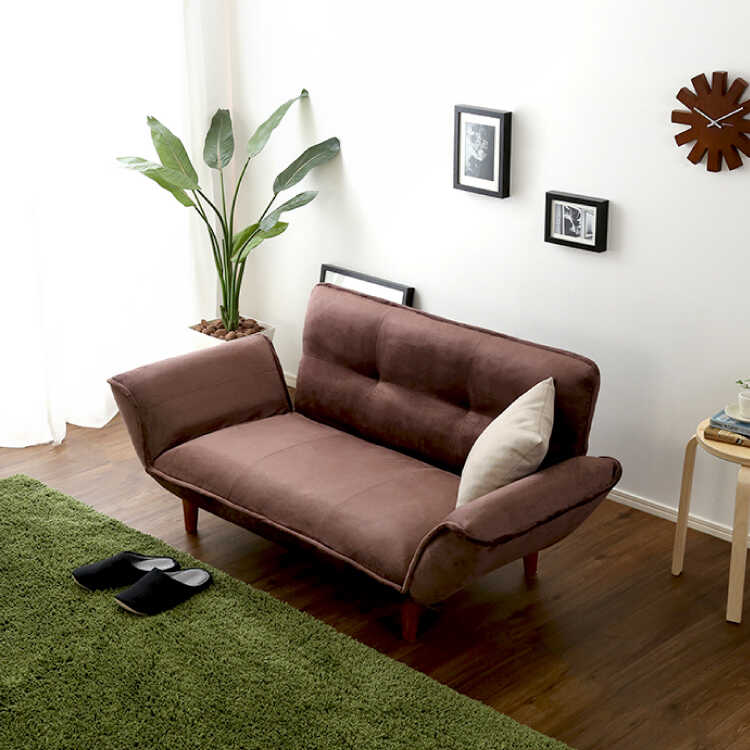 背もたれとひじ掛けに14段階のリクライニング機能が付いているので、好きな体勢でくつろげます。片肘のみ倒したカウチスタイルは足を伸ばしてリラックスでき、映画鑑賞や読書など趣味の時間にぴったり。背もたれとひじ掛けどちらも倒してフラットにすれば寝転んで休憩したり仮眠がとれたりと、ベッド代わりにできて便利です。