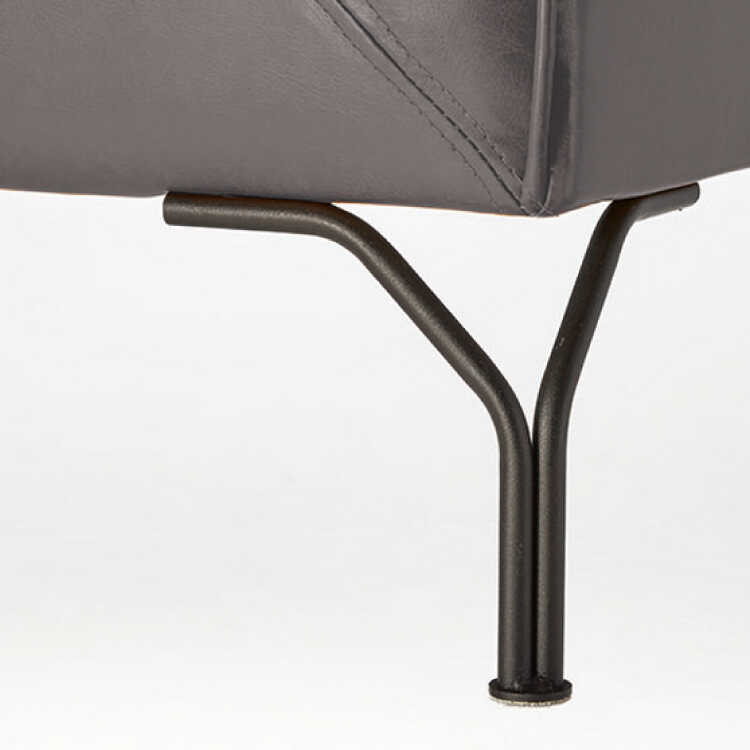 背もたれと肘が一体型になったボックスデザインも特徴的。背の低いデザインなので圧迫感が少なく、お部屋をスッキリ見せてくれます。脚はスタイリッシュなスチール製。1本の脚に座部を2点で支えているため安定感抜群。個性的な脚デザインで、細部までデザイナーさんのこだわりを感じさせます。脚の長さは18cmと高めに設計しているので、ソファ下の掃除もしやすく常に綺麗な状態を維持することがでいます。