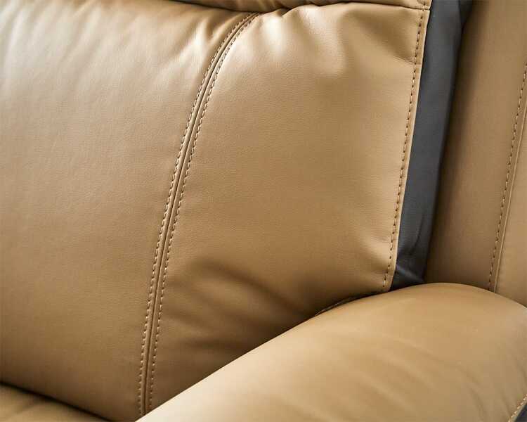 幅202cm・三人掛け電動ソファー(リクライニング無段階・ソフトレザー・ブラウン色)