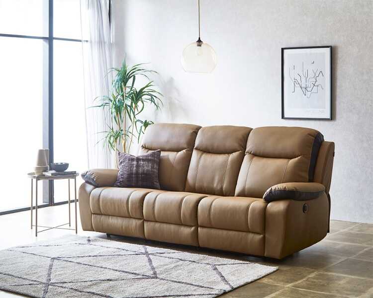 SF-4317 幅202cm・三人掛け電動ソファー(リクライニング無段階・ソフトレザー・ブラウン色)