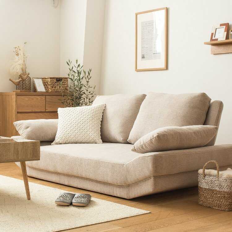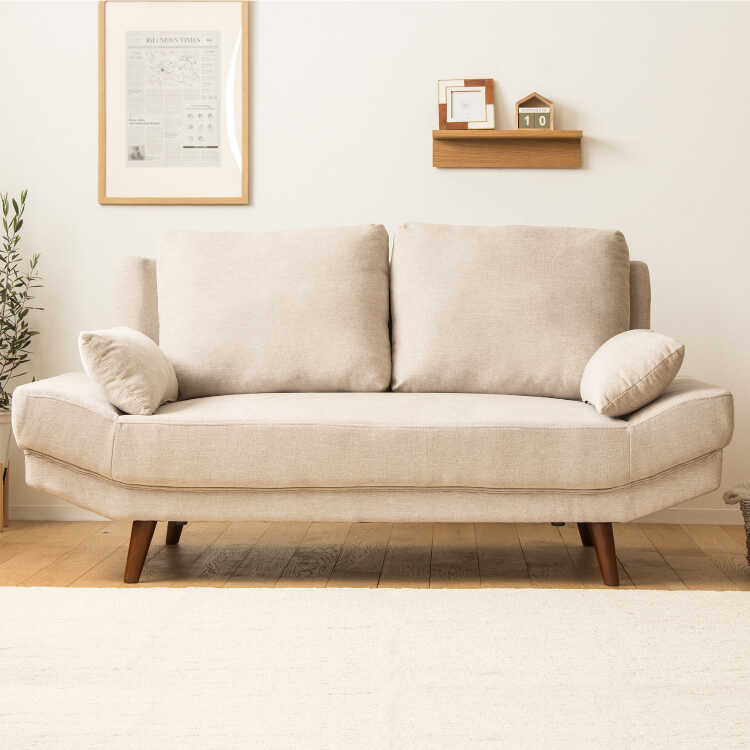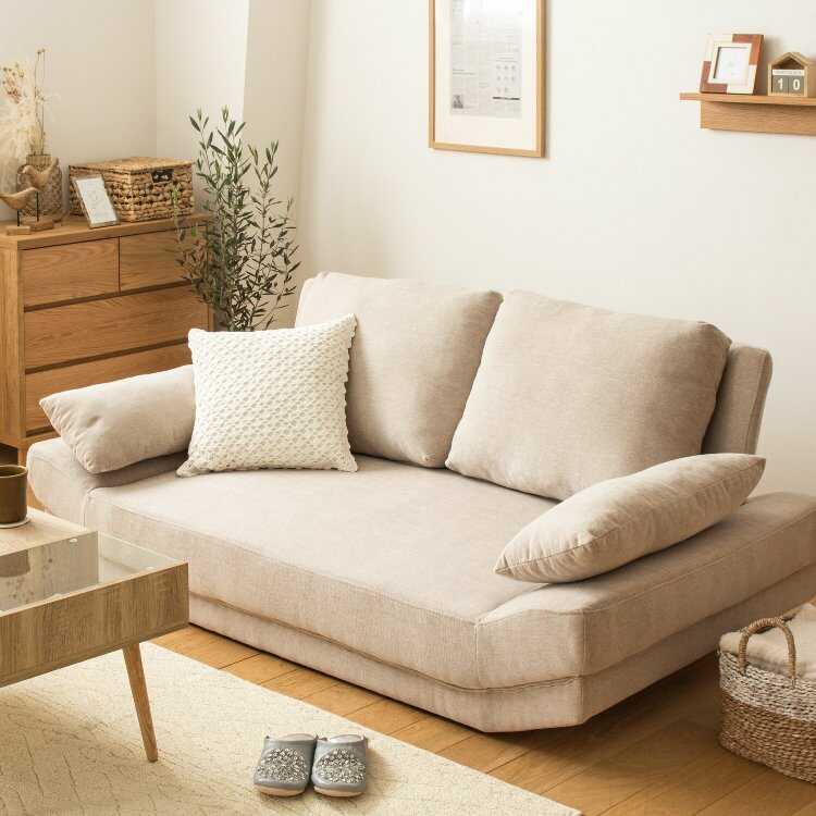 幅170cm・寝ころべるゆったりワイドソファー(クッション付・ベージュ・ロータイプ可)