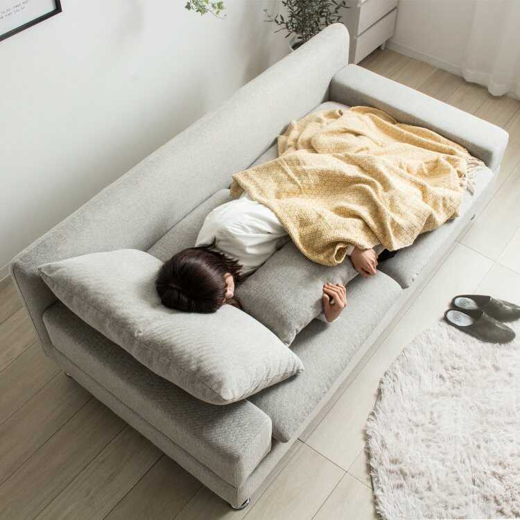 お昼寝など横になる際も余裕のあるスペース設計。特に奥行が98cmとソファーの中でも広めなのでソファーベッド並みのゆったり感でウトウトできます。