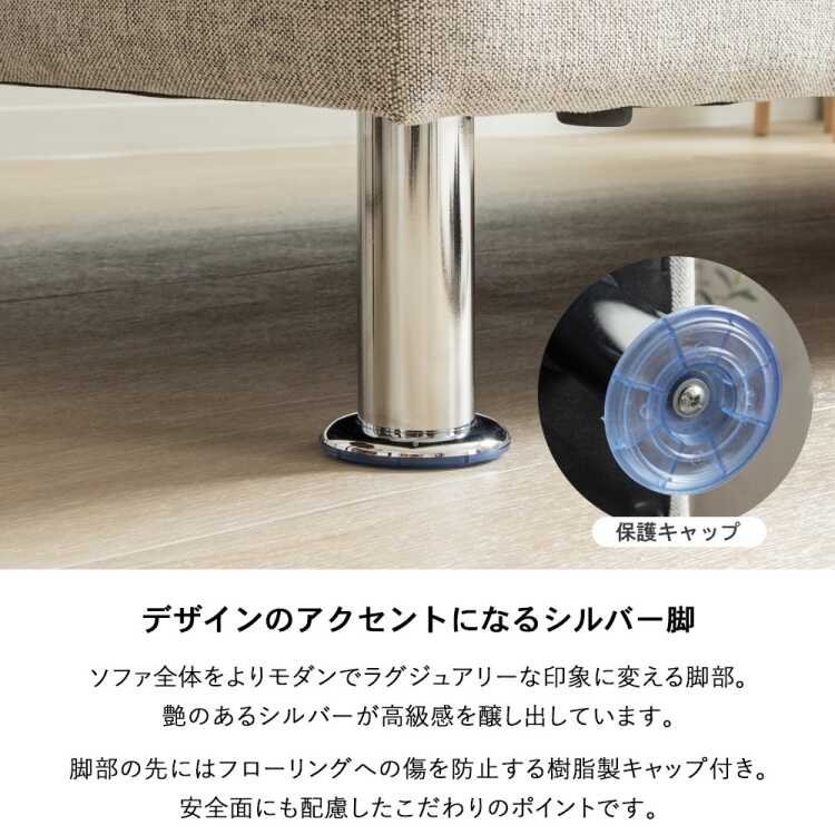 脚は張地のカラーと合わせたツヤのあるシルバー色。