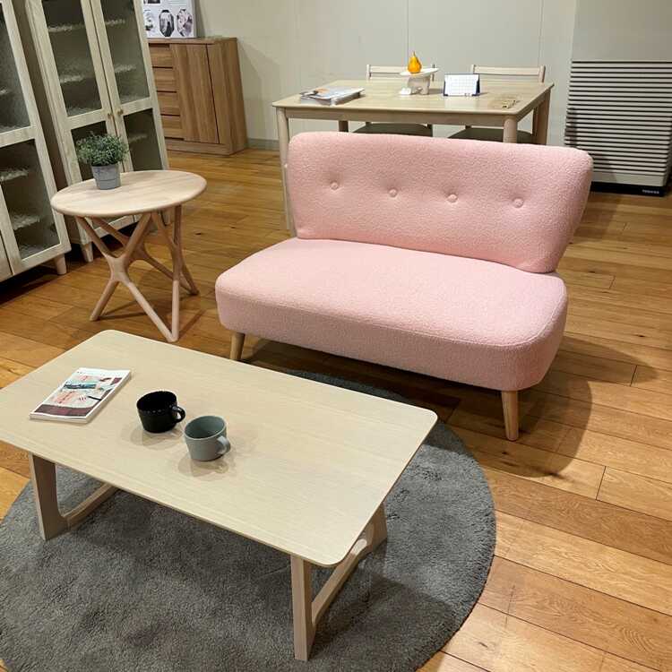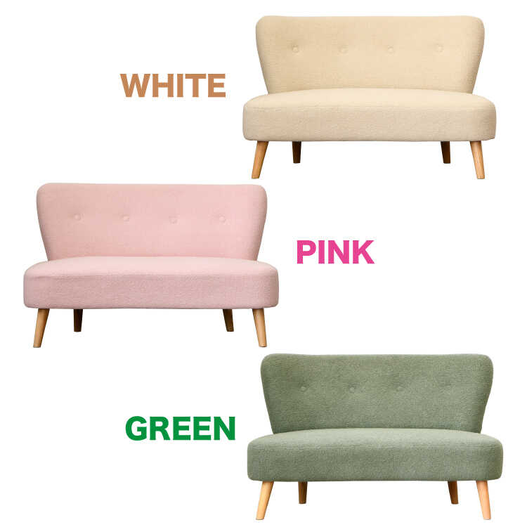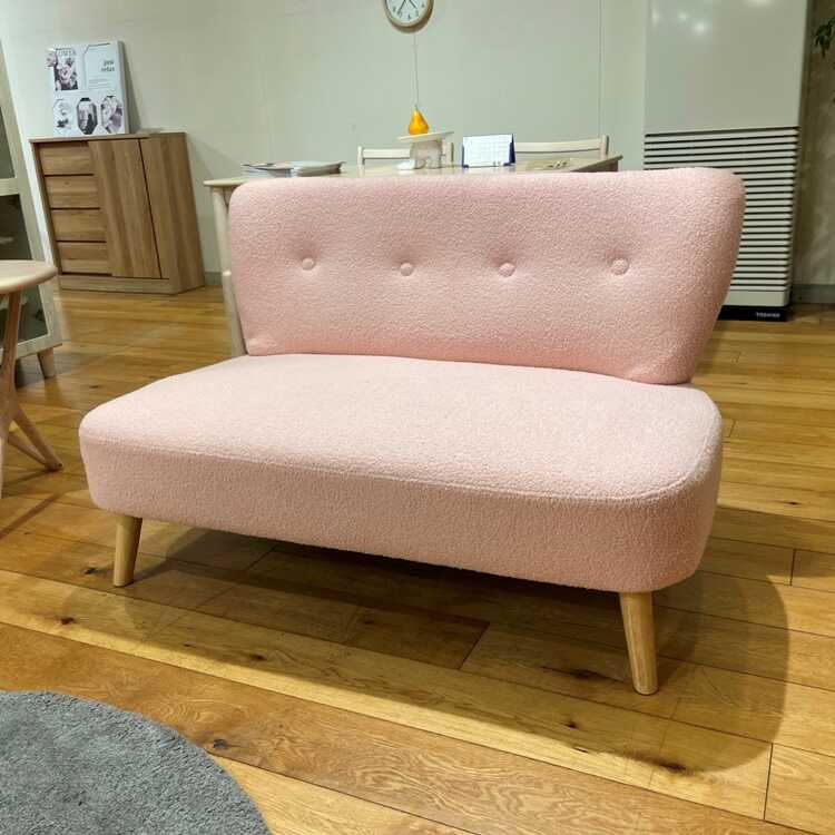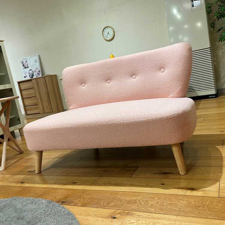 幅118cm・手触りが最高に気持ち良い!タオル生地みたいな布張りソファー(二人用・ピンク色)