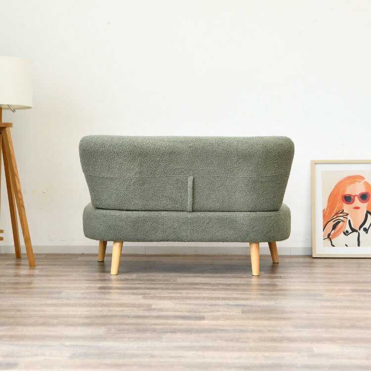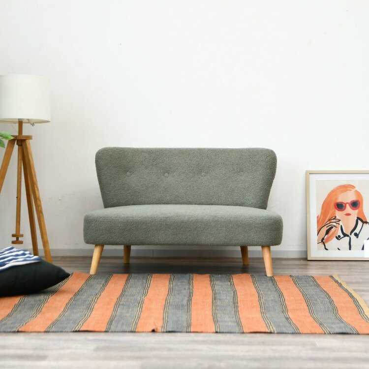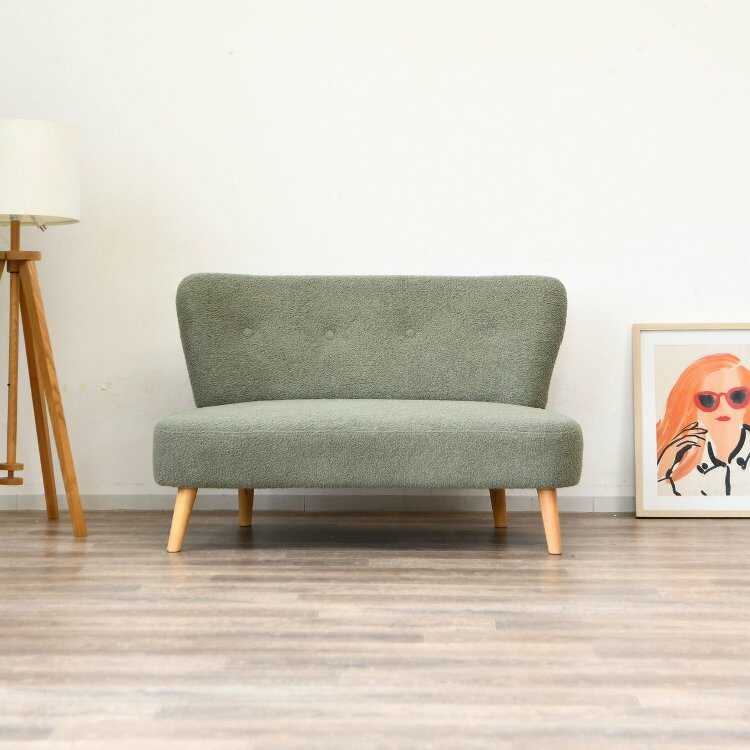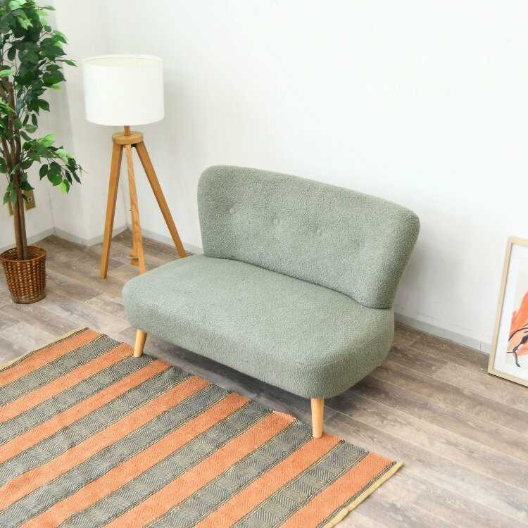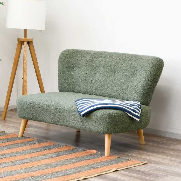 幅118cm・手触りが最高に気持ち良い!タオル生地みたいな布張りソファー(二人掛け・グリーン色)