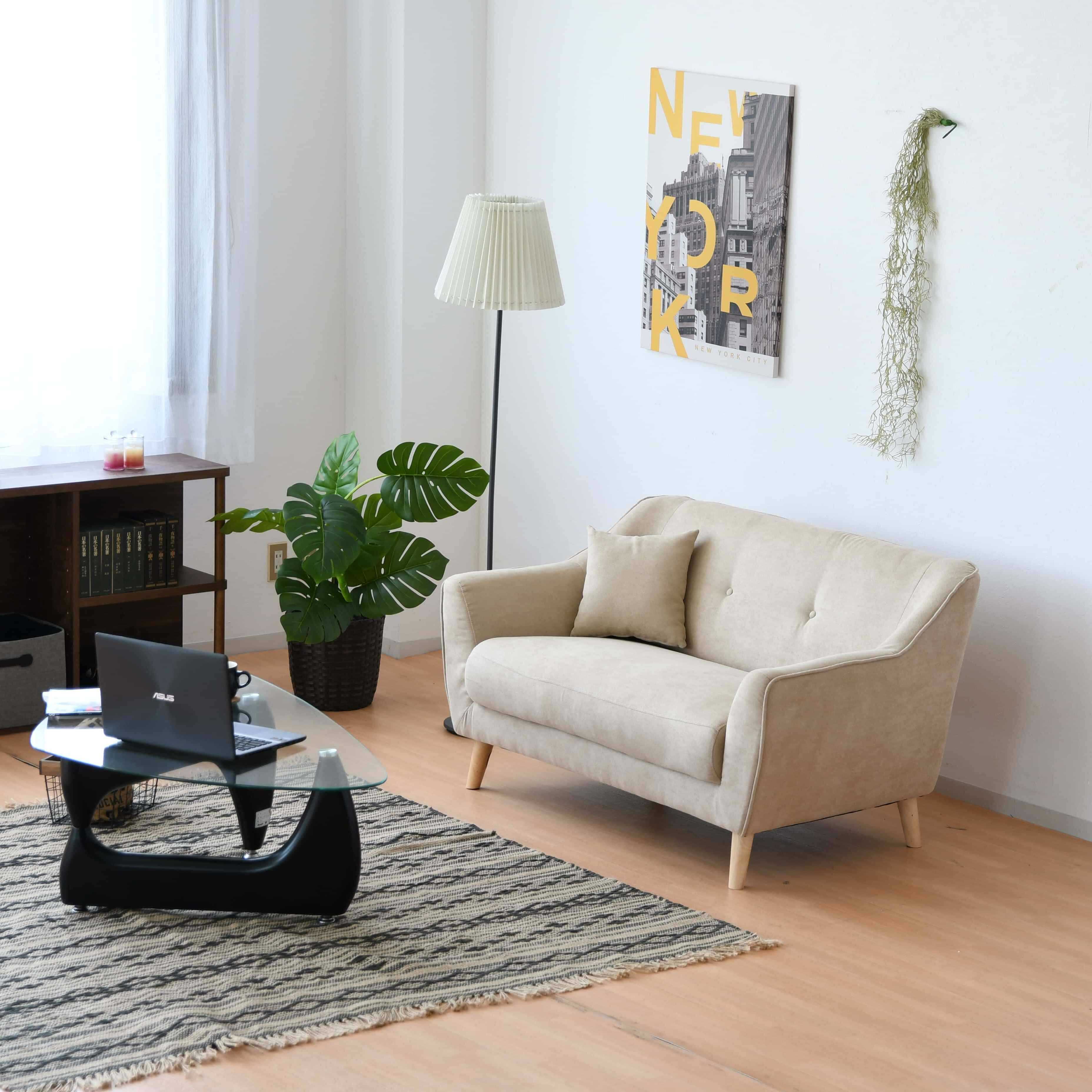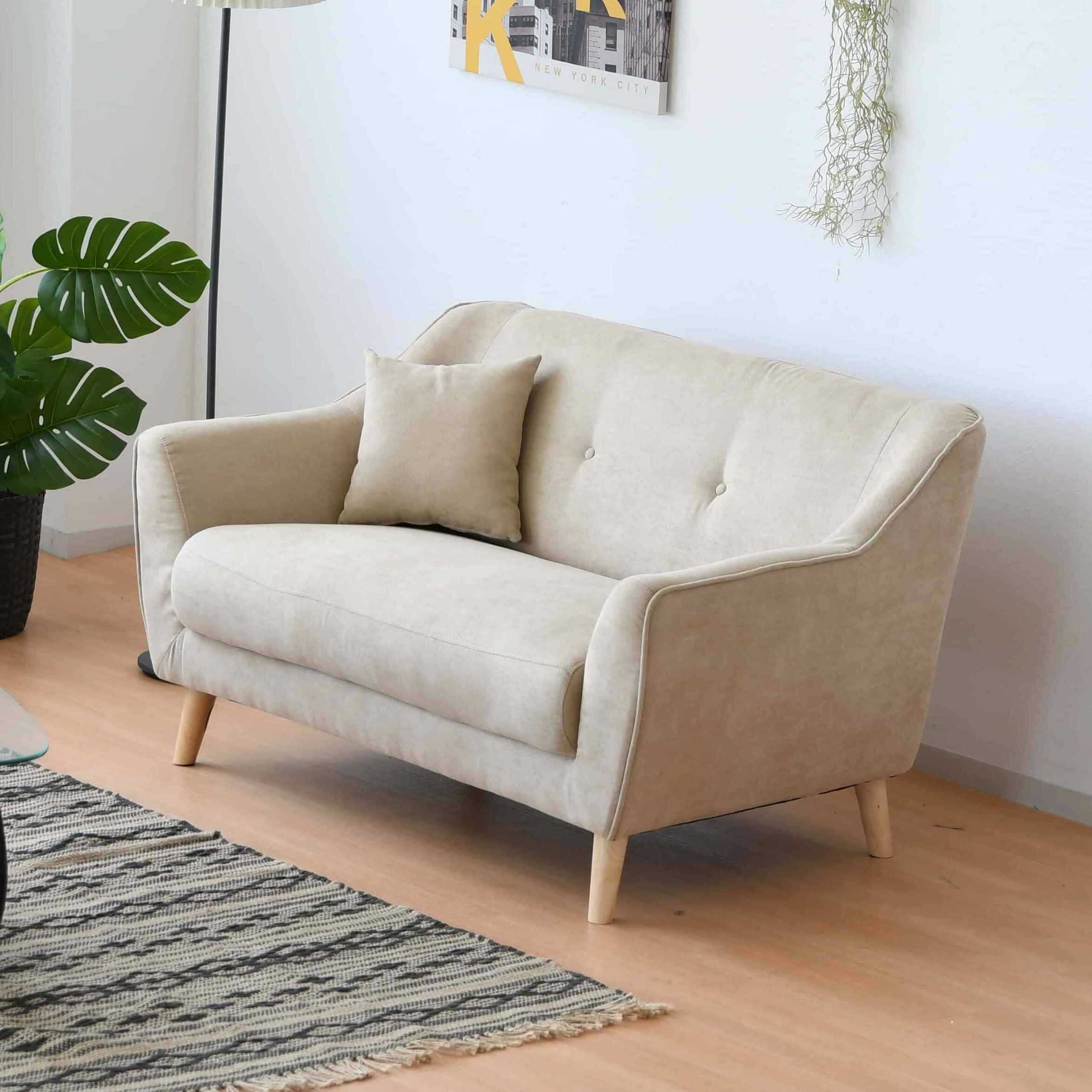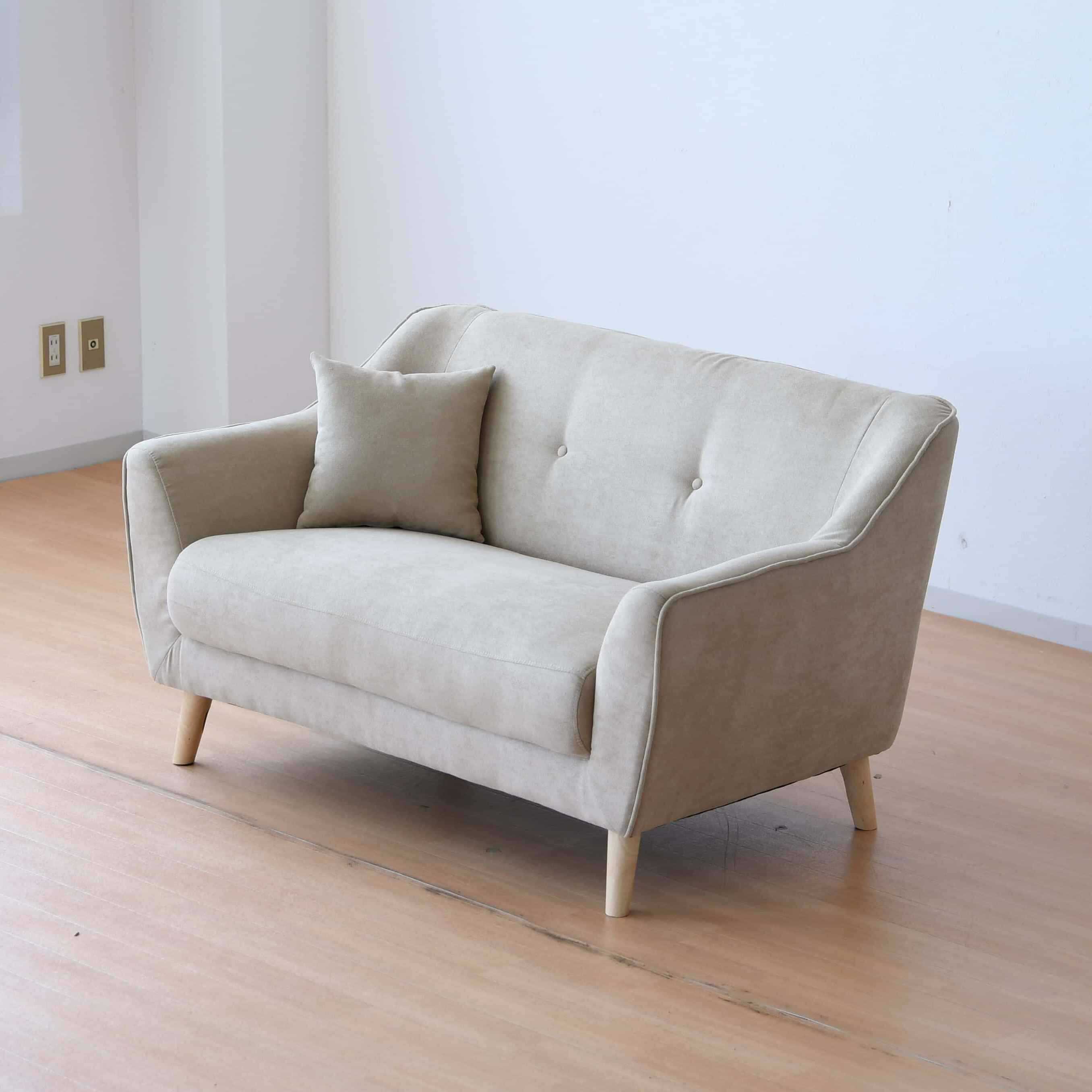 幅132cm・座面がヘタりにくい!高品質なふたり掛けソファー(ベージュ色・布張り)