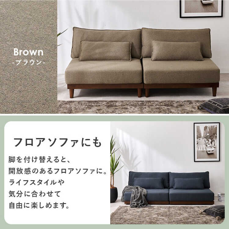 天然木製の脚の他に、ロータイプ用の補助脚も付属。ライフスタイルや気分に合わせて自由に楽しめます。