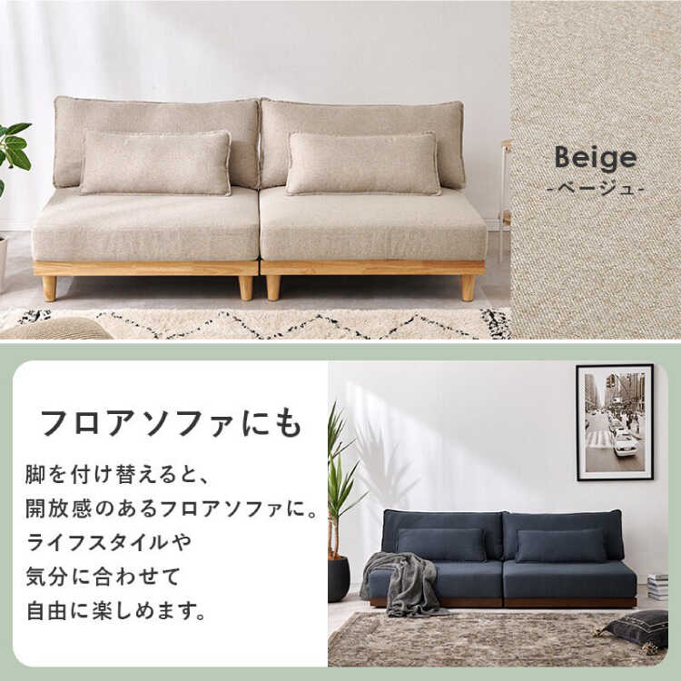 天然木製の脚の他に、ロータイプ用の補助脚も付属。ライフスタイルや気分に合わせて自由に楽しめます。
