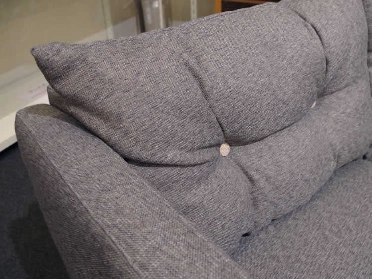 単調になりすぎない様に、背もたれのクッションにボタンを施しており、シンプルさの中に程良いアクセントを与えてくれています。