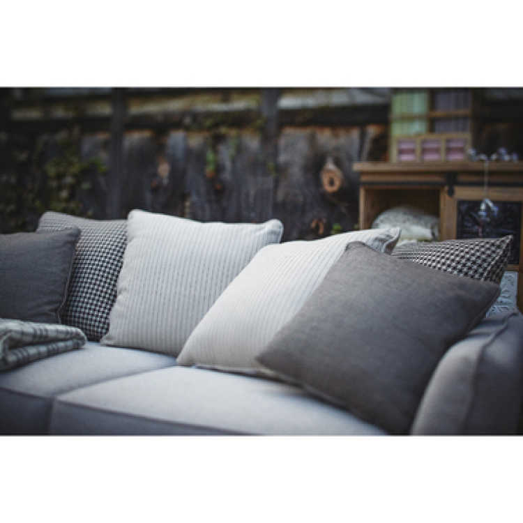 広々とした座面には柄の違うクッションを6個(大4個・小2個)配置し、デザイン性とおしゃれ感を高めました。