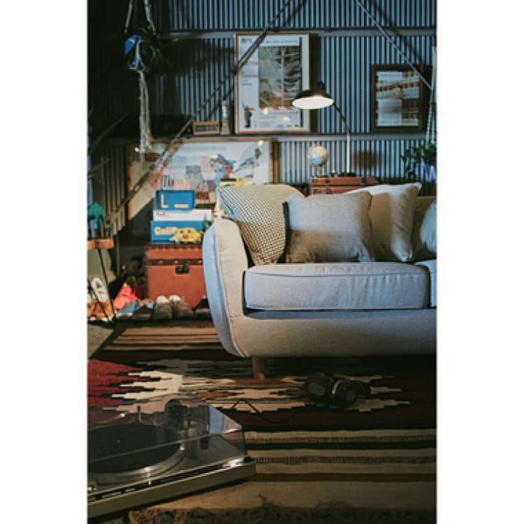 いろんな柄のクッションがとっても可愛い、2人掛けカバーリングソファー。