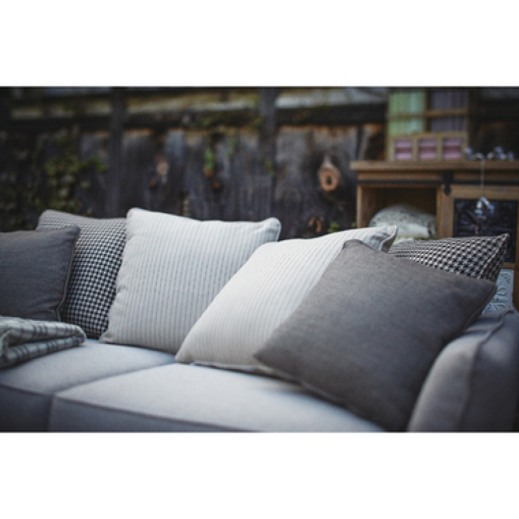広々とした座面には柄の違うクッションを7個(大5個・小2個)配置し、デザイン性とおしゃれ感を高めました。