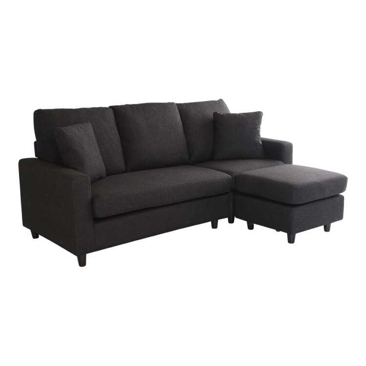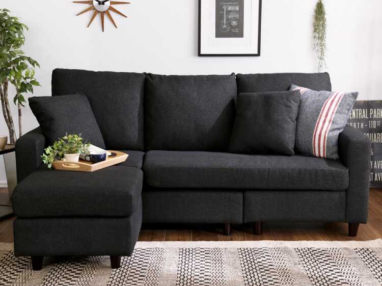 幅176cm・ファブリック製の黒色L字ソファー