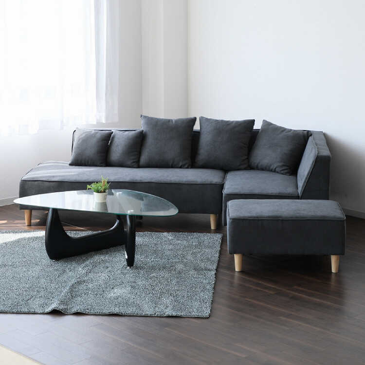 片肘2人掛け・シューズロング・オットマンの3つがセットになったコーナーソファー。