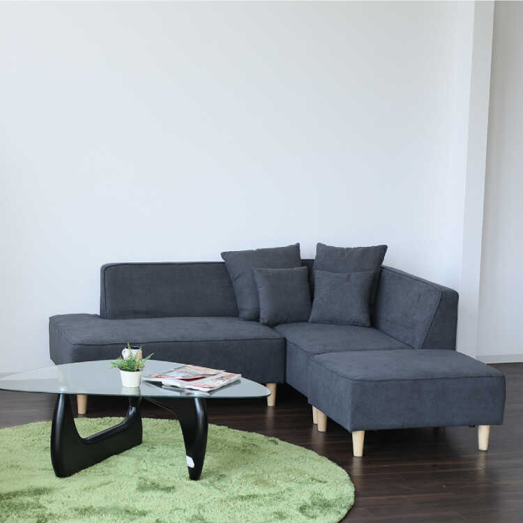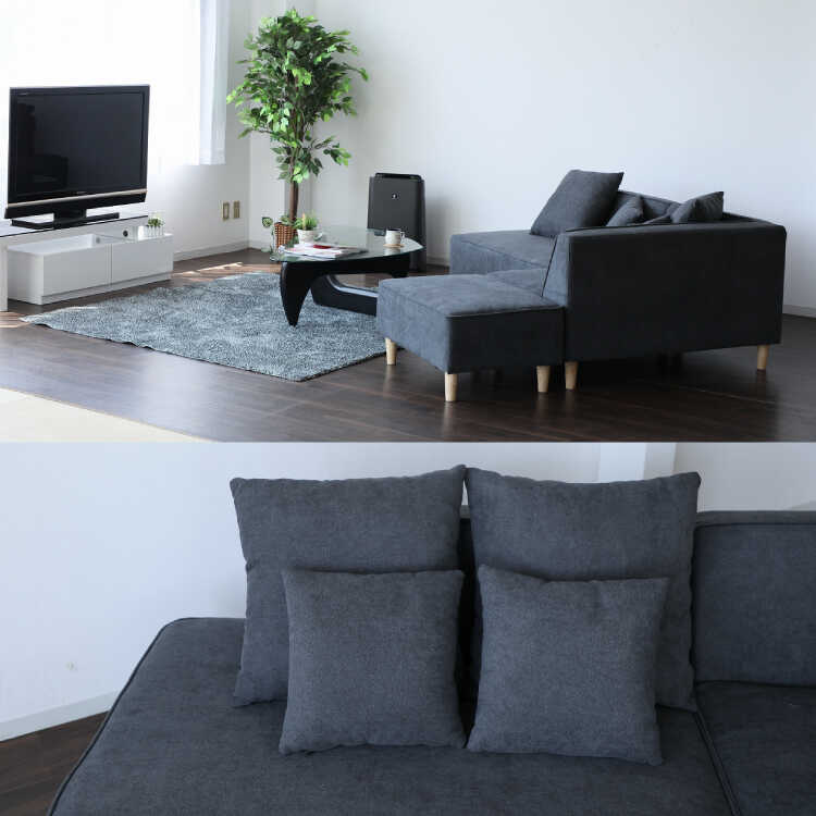 幅193cm・レイアウト組み替え自由な3点セット!布製コーナーソファー(ダークグレー色・ロータイプOK・開梱設置サービス付き)