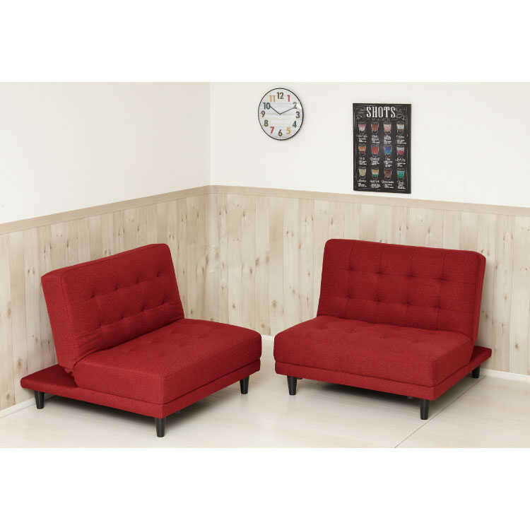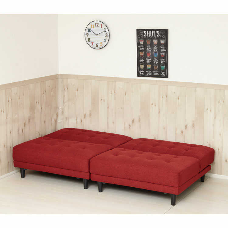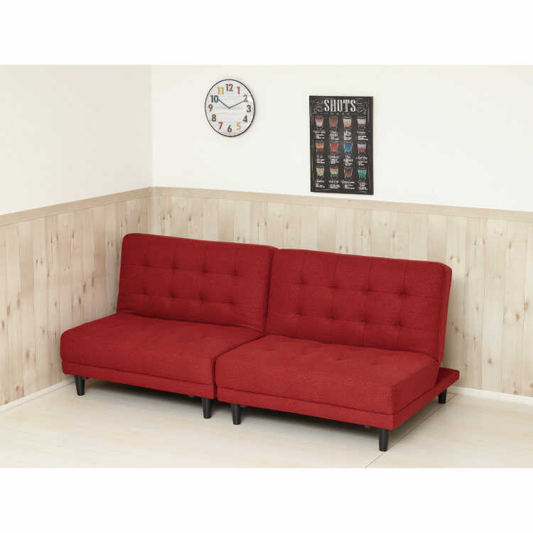 幅176cm・コンパクトに使えるソファーベッド(2つに分離可/ラズベリー色/3段階リクライニング/ロータイプ可)