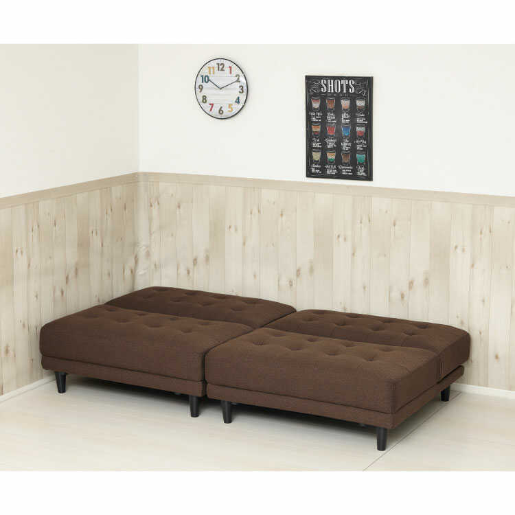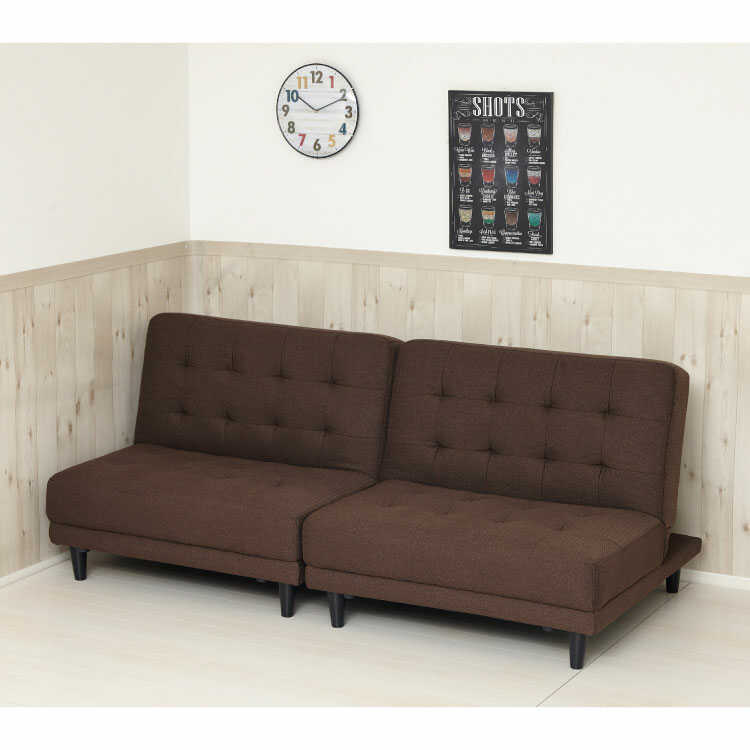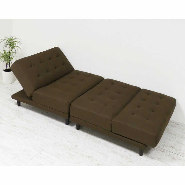 幅176cm・布ファブリック製ソファーベッド(2つに分離可/チョコレート色/3段階リクライニング/ロータイプ可)