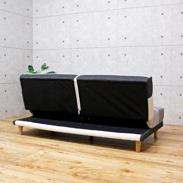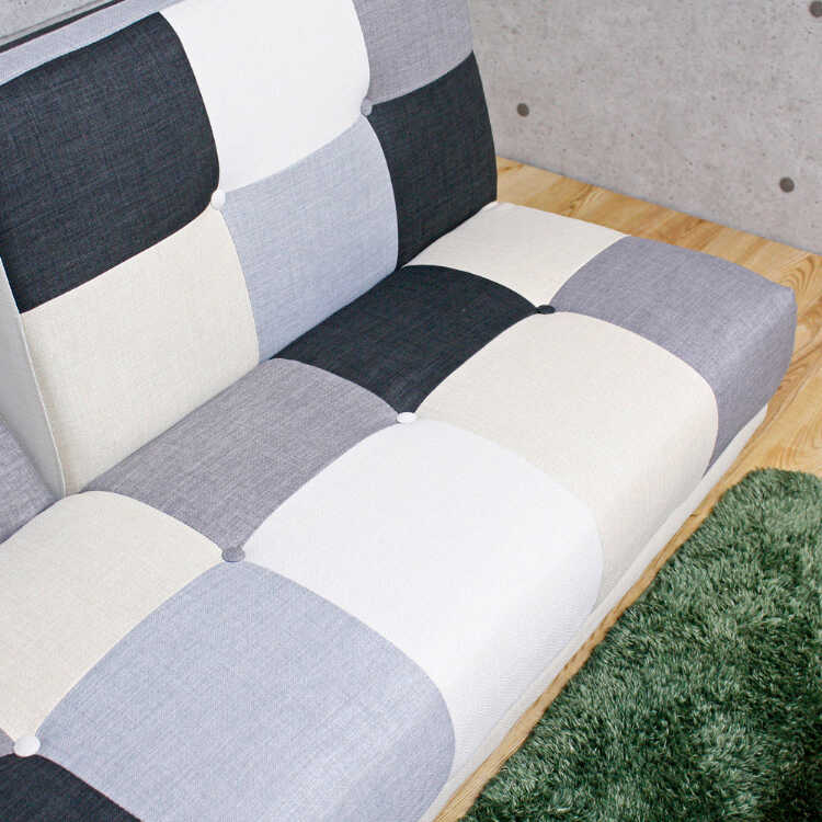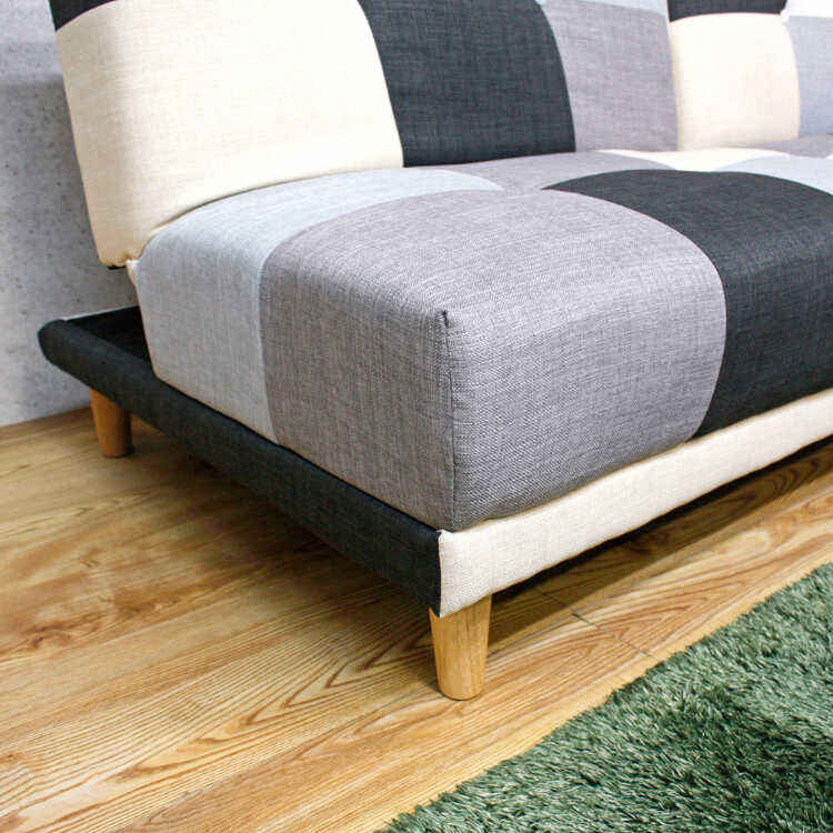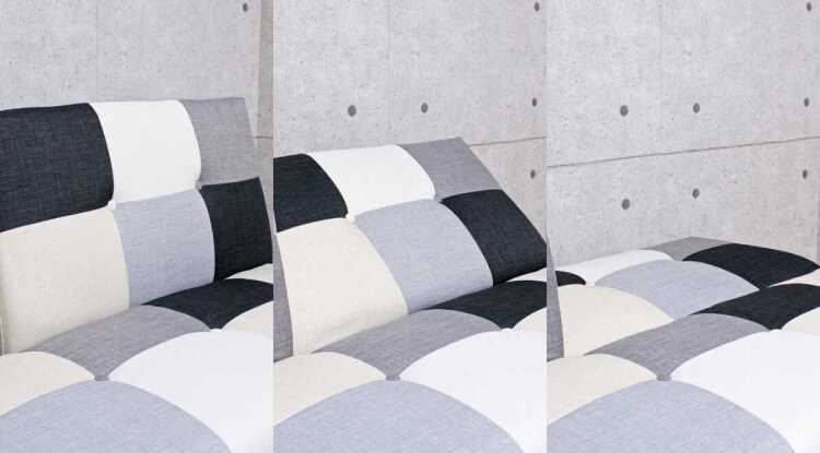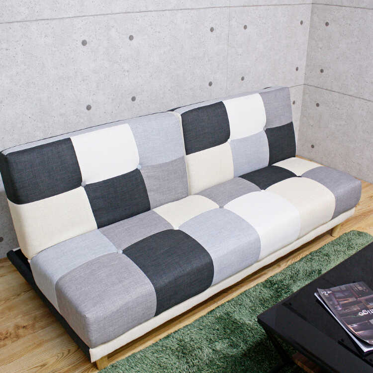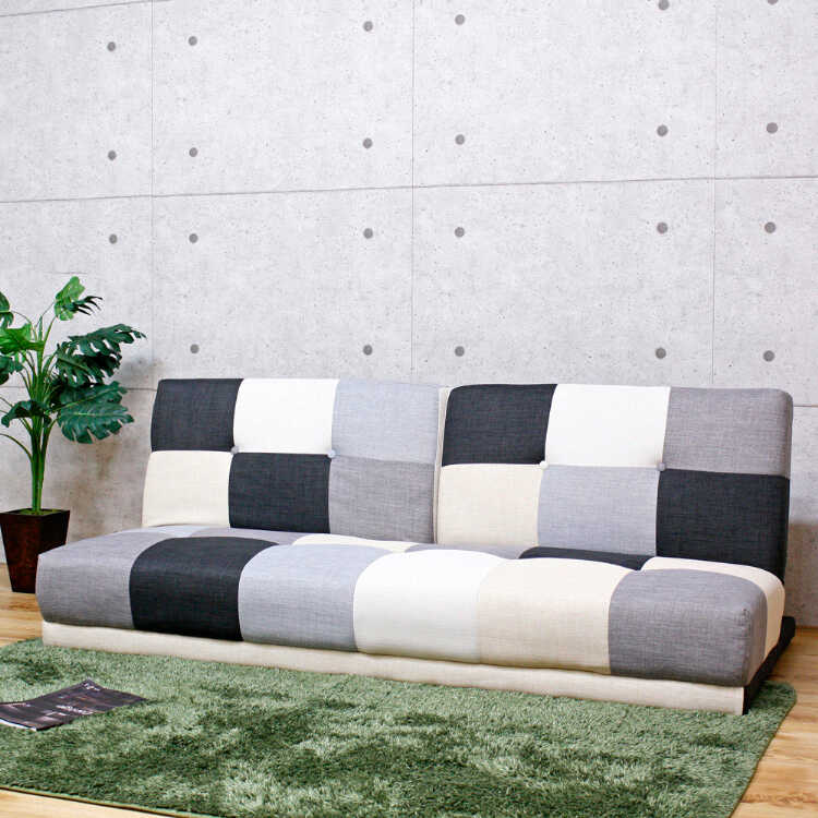 幅180cm・おしゃれパッチワークのソファーベッド(リクライニング3段階・背もたれ2WAY・モノトーン色)