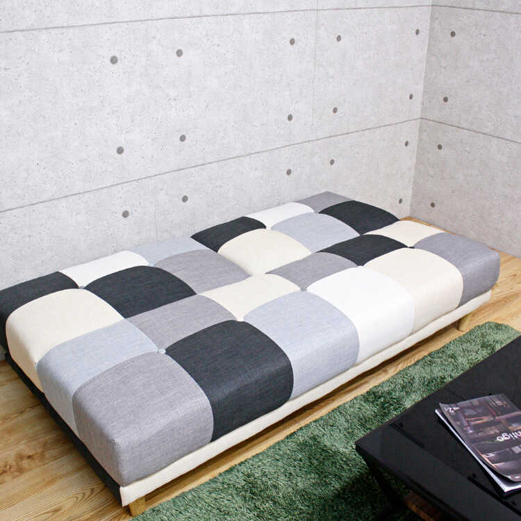 モノトーンなパッチワークがおしゃれなソファーベッドは、モダンやシックなお部屋作りにおすすめです。
