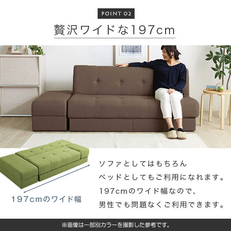 SF-4279 幅197cm・収納付きソファーベッド日本製(布ファブリック製・緑グリーン・リクライニング3段階)