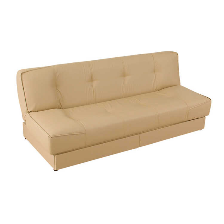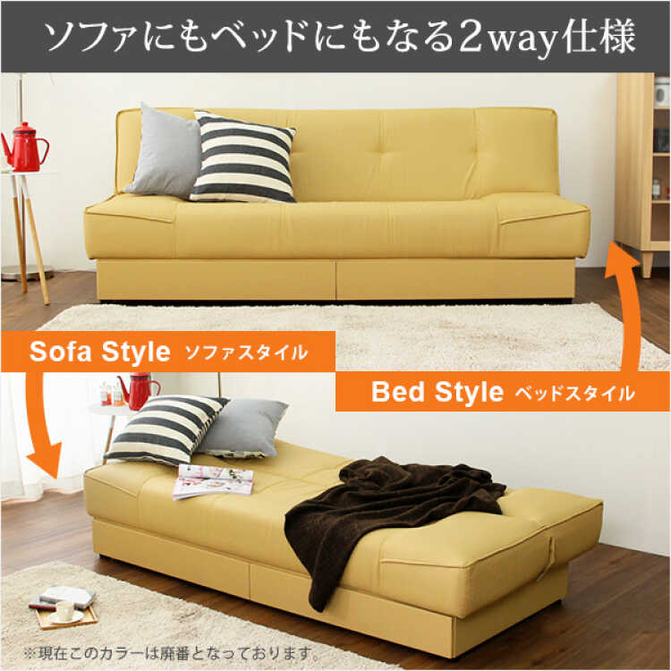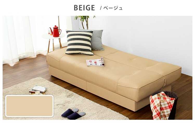 ベージュ色・PVCレザー製の国産ソファーベッド