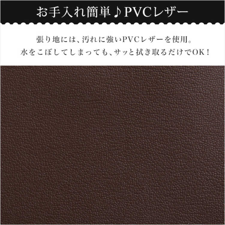 お洒落なレザー製ソファーベッドがワンルームにおすすめです。これ一台で二役を担うので、省スペースにレイアウトできます。張り地は水や汚れに強いPVCレザーを使用しました。カラーは温かみのあるブラウンでまとめられ、落ち着いたインテリアに相性抜群です。脚は高級感のある天然木を使用し、裏面には床への傷防止用フェルトが付いています。