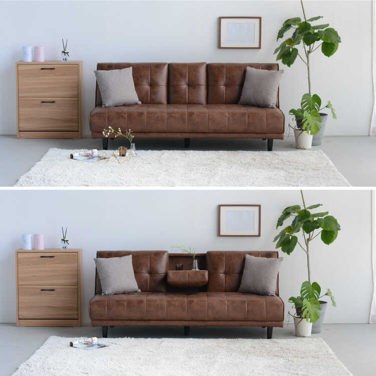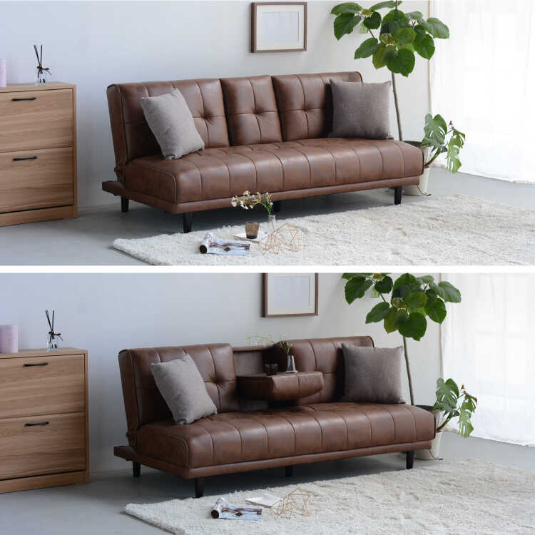 幅180cm・ミニテーブル付きソファーベッド(シリコンフィル・ファブリックレザー張り)